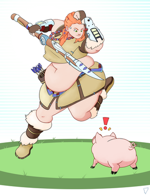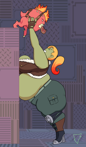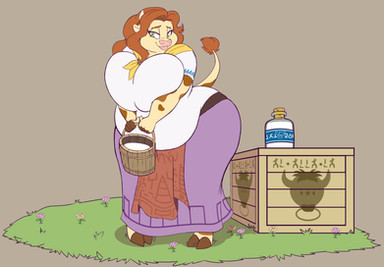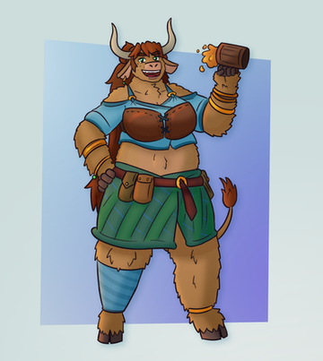 This is for an art trade with featuring his Character, Bashi!She's an ogre girl and seems to have found a cow which she can think of at least two uses for.