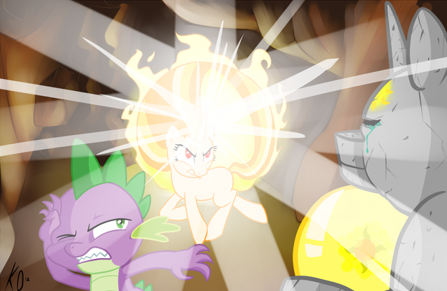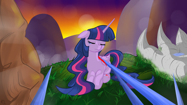 Twilight Sparkle: OK, Shining! Β Here I come!!! *charges and fires multi-light arrow spell*
