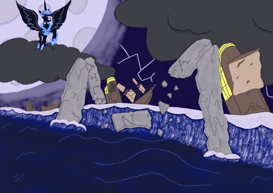 "I'm ready." said Twilight Sparkle."Well," Princess Celestia spoke assuredly, "Your first task is to retrieve a sacred Moon Stone from the bottom of the lake. But you cannot simply swim down and take it. You must split the waters like you do your mane--and only then, when the light of the full moon shines down upon it, will you fetch your prize.
