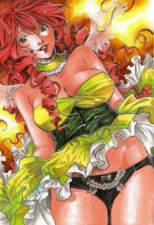 Very nice and very sexy. Love the colours and the technique. It seems to me that her left breast is significantly smaller than her right one, though... O_o