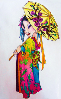Acryllics, orig 11x15The sister to the Geisha already uploaded on here [link] I framed both of these and hung up in my living room on the sides of a shelf with a geisha statue on it.