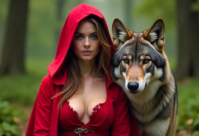 #ai #bigboobs #bigbreasts #bigtits #digitalart #disney #disneyfanart #fairytale #fantasy #female #hot #poster #redhair #redridinghood #sexy #wallpaper #wolf #woman #aiart #redridinghoodart