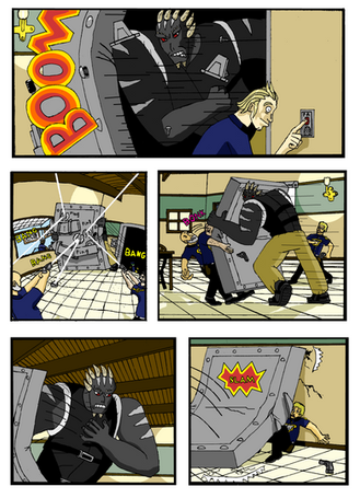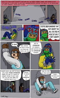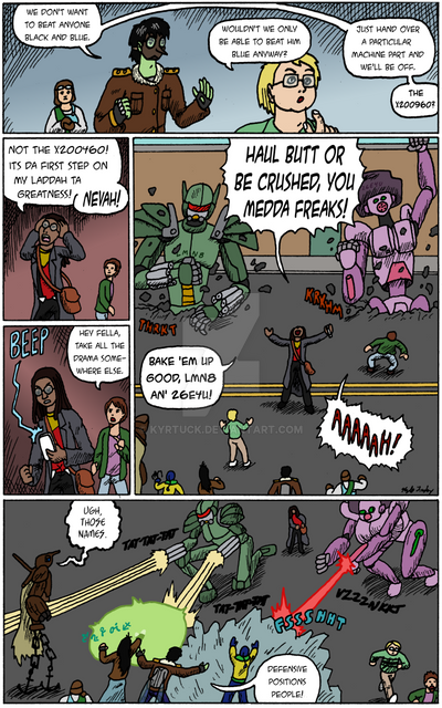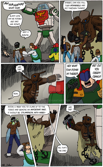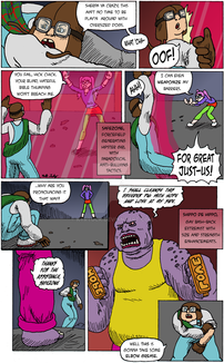 #college #comicpage #lasers #oc #robot #running #series #sherpa #superhero #teenagers #obscuria