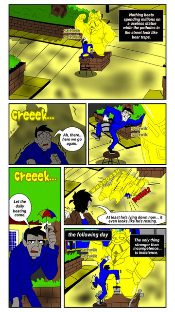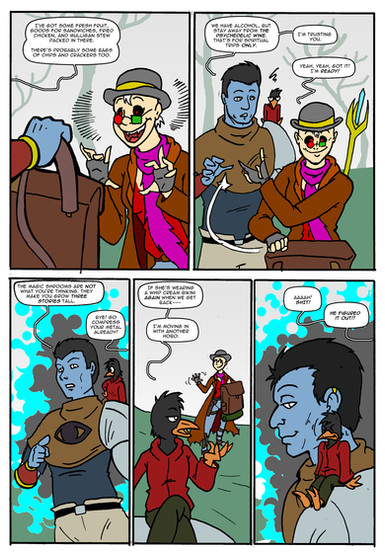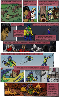 The security at colleges are always a jerk about picking up cans.The suit puts itself on and off Santosh. That was always gonna be a thing, but I hadn't ever gotten to that in the earlier issues I did. So here it is now.