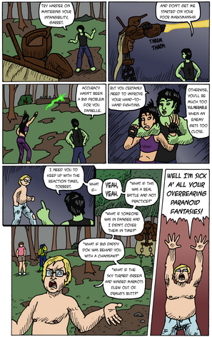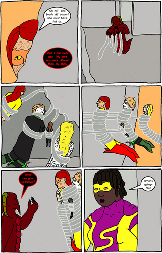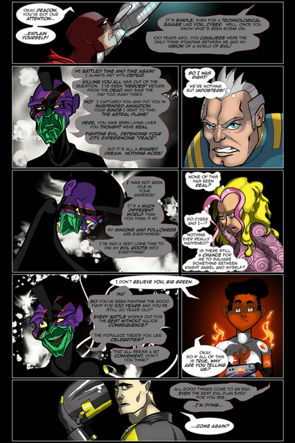 Feels like I oughtta be doing more background details, but keep forgetting. Like lamposts.Also in the last page I had forgot to do the red and blue plaid on Caber's green sash, but I had rememered to do it this time. Ugh, Im been so tired and busy already, and still not doing a bunch o stuff I wanna do.....