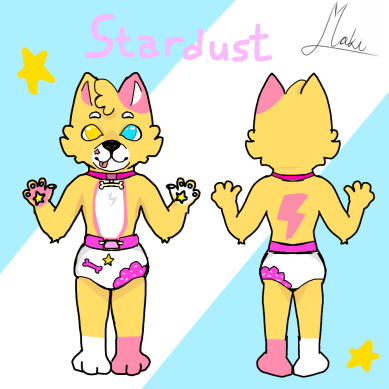 Wisp is a 5 year old and step brother to Hallow, they became brothers at the age of 1 and now at 5 are almost like twins, he is kept in diapers because Hallow isn potty-trainedart by: www.furaffinity.net/user/natha…