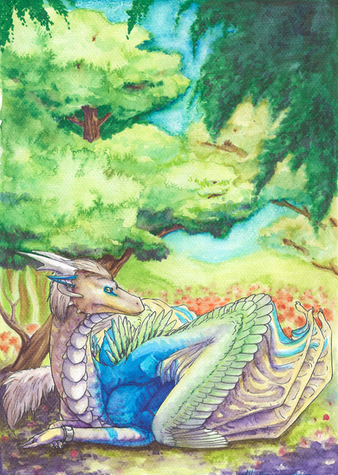 Great work on the colors and the dragon, especially his face <3
