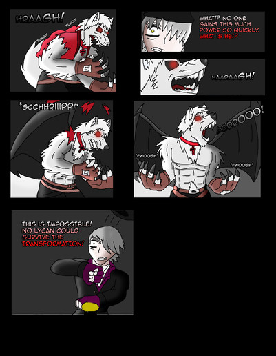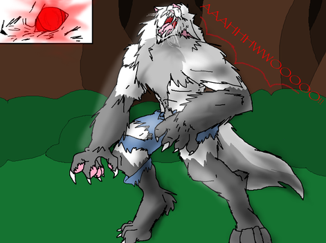Individual hairs pop out of his flesh, one by one, and before he knows it, a sea of fur washes over his whole body. Claws burst from his fingers, and then his teeth grow sharp and yadda yadda, too lazy to write the rest XD