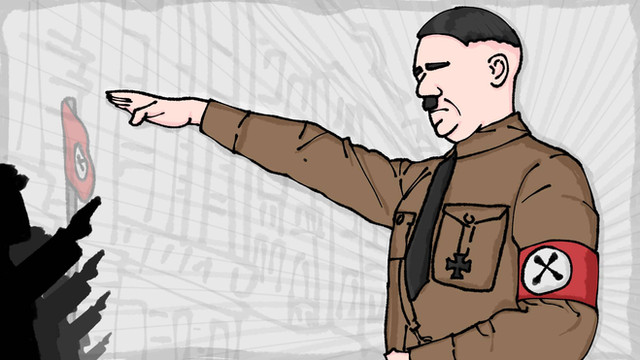 You did an awesome job with blending and shading here! He is in pretty good proportion, too. The swastika on the flag looks kinda weird though, no offense. Hitler's armband is looking a little small, I might add. That thing that he's holding, which I'm guessing is a speech rolled up, is also not very distinguishable. Other than those few things, it's pretty good!