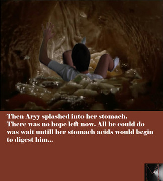 3 (un)lucky men splashed into the giantess' stomach.Related content