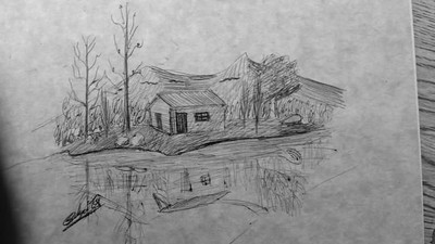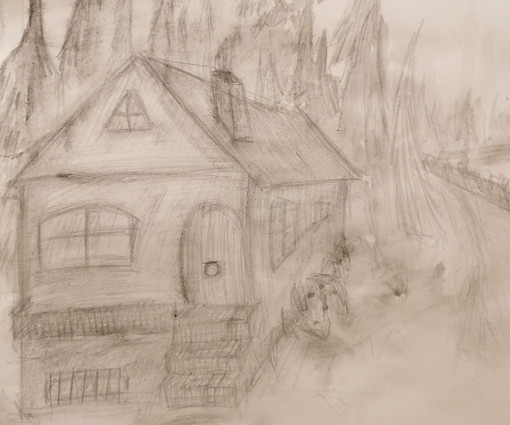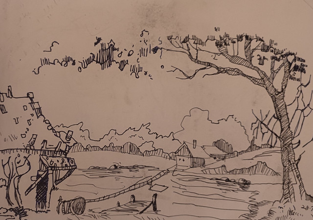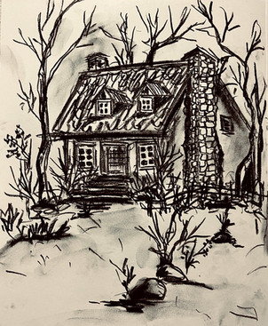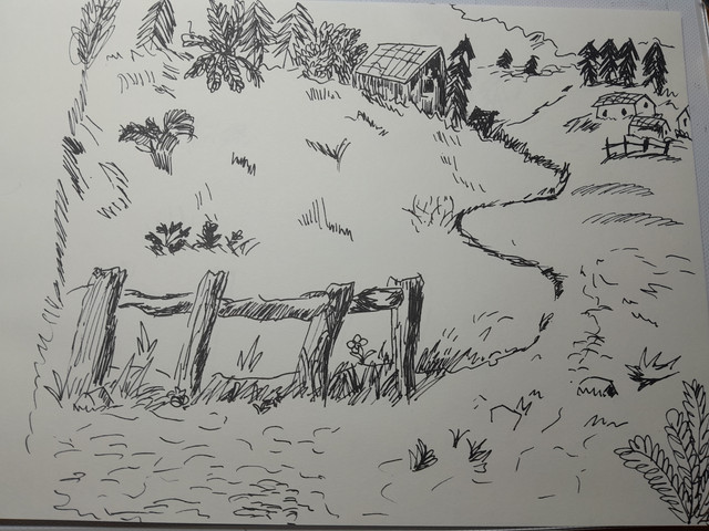 The first drawing I made on 02/24. I wanted to put on paper a scene that was in my head: an abandoned farmhouse with a chicken coop in the background, and a plantation of chicory. The chicory turned out a lil' bit... not chicory-like, I guess?Anyway, I still have a lot to learn about landscapes.