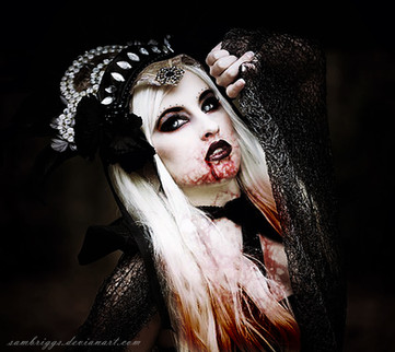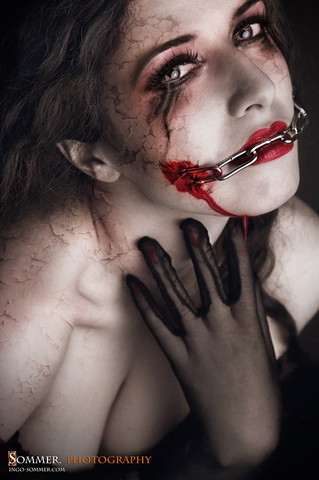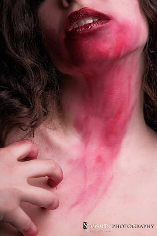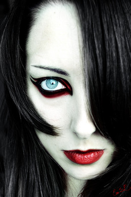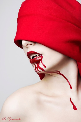 The makeup and editing job on this picture are amazing. The make up resembling blood, the red lipstick and nail polish are a great touch. The lighting on this picture shows her silky white and even vampiric skin, which I am sure is what you were going for. The vision in this picture speaks more than a thousand words. As for originality, it is one of a kind as far as I have seen. The technique looks very professional, and the impact on the viewer is inspiring. I fell in love with it the moment I saw it. This is a five star piece of work!