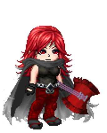 Aura/Semblance: She has a lot of Aura, as her Teammates sometimes comment. But having this much aura only grants her average control of it. Her Aura has a dark Crimson glow to it. Her Semblance is Steel skin, which hardens her skin to the point of being inpenetrable, this helps her getting in close to her enemy while tanking the damage they do to her. But using it too long leaves her very exhausted, to the point of unconsciousness.