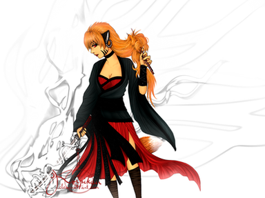 Appearance: Adriana has red hair, which she keeps just below shoulder length. She always styles it in the same style, but sometimes she puts it in a Ponytail. She has a normal skin tone, albeit a bit on the pale side. Interestingly enough she has bright red eyes, which match her hair. She is 170 cm. (5'7") Tall and weighs 56 Kg. (123 lbs.) She is normally muscled, so she can swing around her Weapon and still have a good figure. She has a scar on her left knee, which she hides with her pants.