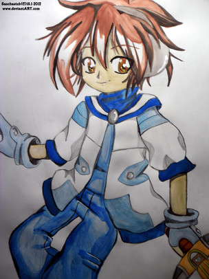 I drew the lineart to this waaay back in early November, during a nasty period of depression I was suffering from while ~Blade-Angel and I were going through a rough spot. I thankfully got over it (and we worked through it) before I ever finished this piece, so it was forgotten for a while. I found it again a few days ago and decided to finish it up, so here it is.I recall wanting to add a line from Yuki Kajiura's "Sweet Song" from Xenosaga: Episode II when I first drew this: