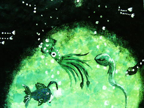 I love fish. I just think they're fasinating creatures. Clockwise, from the top left corner are: Anglerfish, Coelacanth, Mola Mola or Ocean Sunfish, and Whale Shark.Coelacanth are my favorite fish. Look them up. They're awesome.