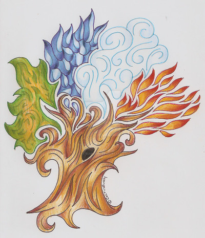 The elements according to Chinese philosophy. I jokingly called this my "Avatar piece" when I started it because I had started watching the show on Netflix.Clockwise from the top: Wood (Mu), Fire (Huo), Earth (Tu), Metal (Jin), and Water (Shui).