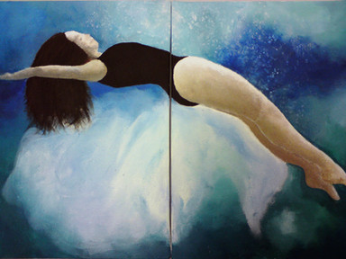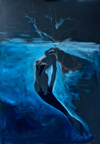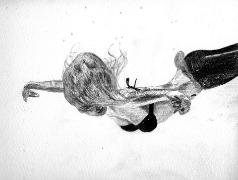 I had been watching ANTM and decided to look up pictures of underwater fashion shots and came up with this.Conte on black paper.