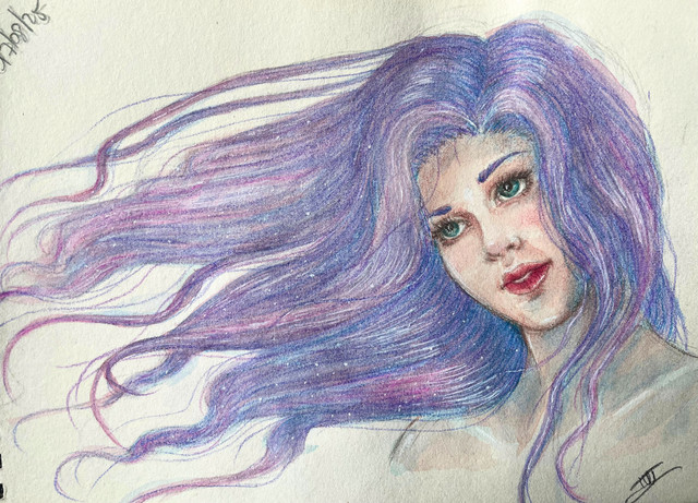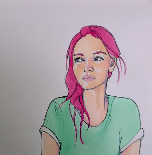 #fanart #portrait #portraitgirl #pencildrawing #coloredpencil #traditionalart #characterdesign #originalcharacter #redhair #fuchsia #girl #marker