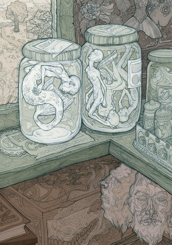 Thank you! I figured that at least one part of the drawing should remain simple to balance out the horror vacui downstairs