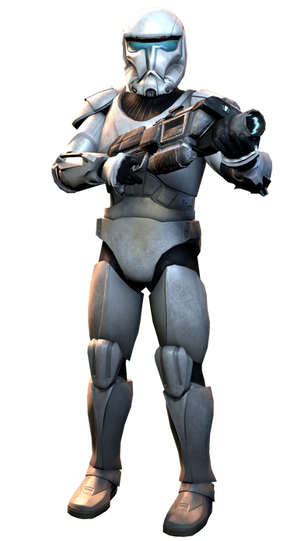 The third of my clone commanders, now as a playable unit for BF2, Commander Vechter. [link]Credits to Pandemic for the base model, Kinetosimpetus for the pauldron. I remade the skins.