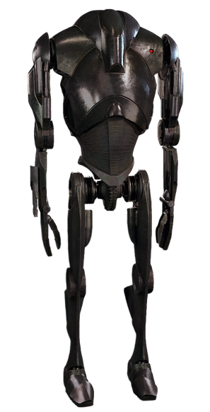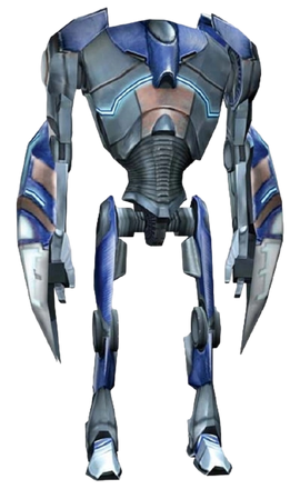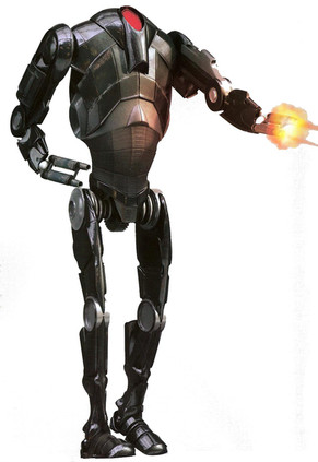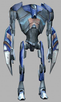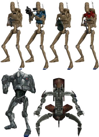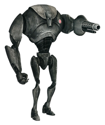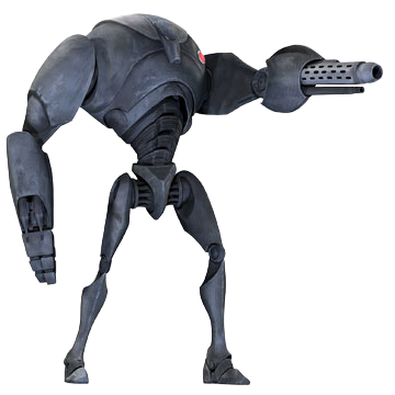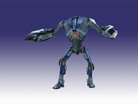 ..so basically you took a Super Battle Droid model from a Star Wars game, put a huge badly textured block on one arm, and then added badly textured and out-of-place spikes on it's back.