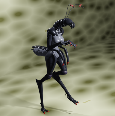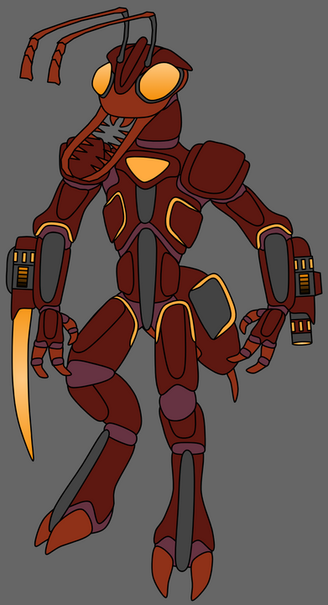The average height of a segma is around 1.5 meters, and they have an average lifespan of 52 standard years. Segma are omnivorous, their strong mandibles being able to slice through the exotic plants and animals of their world. Their small bodies are cover in a hard, chitinous exoskeleton that molts every seven years. Their five compound eyes grant them a 360-degree field of vision, and their antennae can sense changes in the air current, making it almost impossible to sneak up on a segma.