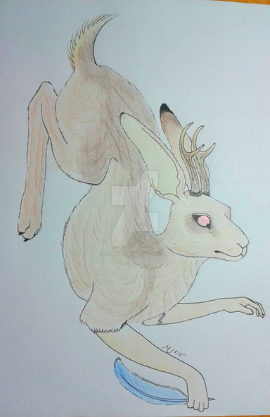 Nameless is basically a fox-deer hybrid.description: foxlike body, deer hindleg, short fluffy tail, smal antlers, deer ears, no pupils, fluffy cheeks, fluffy neck, main furrcolour is red, white underside, black nose, black eartips, black stripe on muzzle, black feet, black tailtip, black ''eyeliner'' around eyes