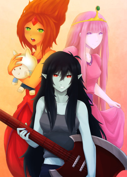 I tried to draw the Adventure Time girls as a print ahaha... Adventure Time fans I am sorry I just got into this mode during the weekend a few weeks ago where I was like WATCH ALL THE AT EPISODES and then TRY TO DRAW THE CHARS and then it was just no and I TRIED. Also it takes my computer 100000 million years to open this file... I literally have to start opening it and then fetch some lunch, go for a walk, and watch some television before it loads X__X //cries my computer why do you do this to me