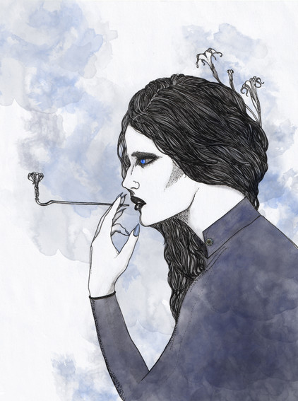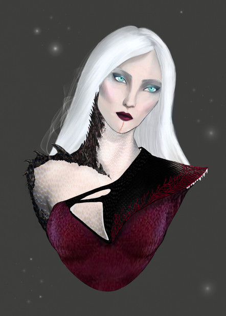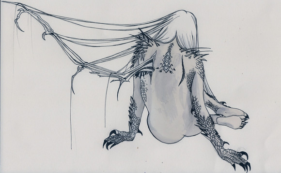 Ahh, a fascinating combination of the nubile and the monstrous, the temptation of the dark creature which lures prey close before striking .... or which laments being both so close to, yet forever set apart from the creatures instinct forces her to prey upon.