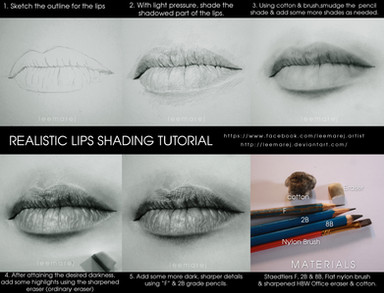 But please use another font for the next tutorial. It's okay for headlines, but it's hardly legible with the instructions. And please describe the single steps a bit more in detail. Not just which pencils you used. If people like me draw lips for the first time because they saw your nice tutorial, they will sometimes overlook important steps because they just draw after the pictures. Sentences like "Draw the shaows of the teeth" or "use the eraser to make the shiny parts of the lips" would have been very helpful