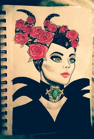 Wow! Maleficent looks seriously hot in that drawing. Love the feathers around her neckline. This one definitely goes into my faves.