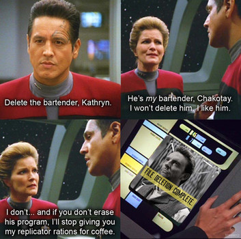 LOL I cracked up when Worf had a foodgasim for the cellular peptide cake