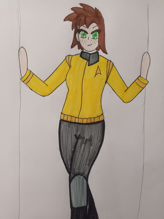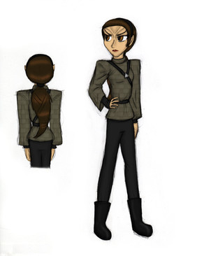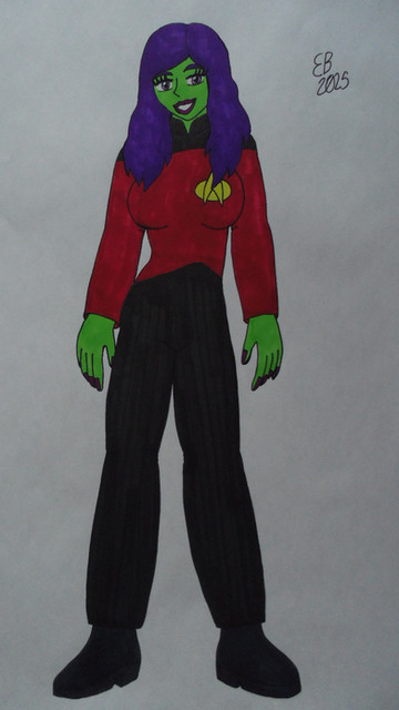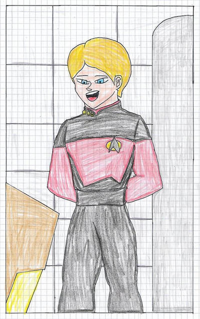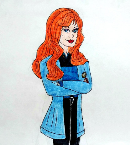After graduating from StarFleet she became an Ensign and was transferred to the USS Repulse. As a medical officer she would interact with her patients and other coworkers when she was needed but when she had her breaks she tried to avoid social contact as much as possible so that her Android tendencies wouldn't show but this has lead to some misunderstandings about her with her coworkers such as perceiving her as being rude and stuck-up. After 2-3 years of being an Ensign she became a Lieutenant when she was transferred from the U.S.S Repulse to the Enterprise-D. She was overwhelmed by being in a Galaxy class starship she thought it would be more difficult to hide her Android tendencies that it was bound to happen. One day while walking on her way to Sick Bay a giant space blob that was harming the Enterprise tried to capture her. Out of fear she tried to detach her arm from the monster without thinking twice if there was anyone around watching until Lt.Commander Data appeared just in time to stun the monster with his phaser. He was confused and yet thought it was fascinating that there was another Android on the ship. At first she doesn't trust him because she was afraid that he would report her to Star Fleet for lying about her identity since he is a senior officer. If he did report her then she would not be able to fullfil her father's dream. Eventually, as he started to get to know her better they both become friends. As a result of her friendship with him she starts to develop confidence in herself to interact in social situations.