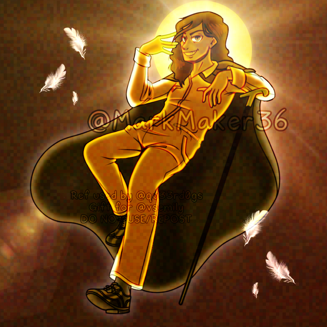 I'm glad you like it When I was drawing the background I was stuck between a futuristic cathedral or a stained glass window.