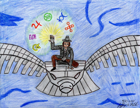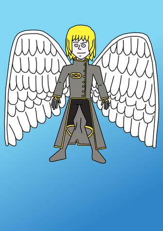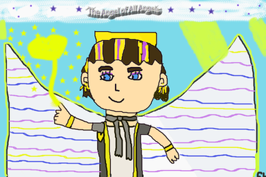For the background I used water colored pencils and I added textures from picmonkey.com I drew André and the background separately and merged them together with fotoflexer. As for the wings I wanted a mechanical and yet an angelic effect to it