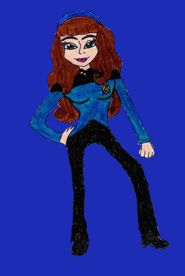 Thanks for the suggestion I tried looking at Android references by googling images of them and I get mixed results some look robotic while others look like humans. With my version of an Android I tried to mix in human (hair, clothes, and facial features) and mechanical (eyes, grey skin, blue electrical rings on neck and fingers) like appearance.