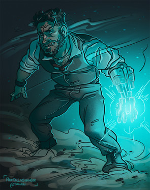 Oh noes, quick, press on it hard! I love how the magic glow appears to be dripping like underwater, floating against gravity, and how Trenton's eyes look on the verge of rolling in a faint, the colours are fantastic )acid green is always a winner, in my opinion) and wow well done for using red so well in that stark-lit background, I think the very thin red outline works really well too