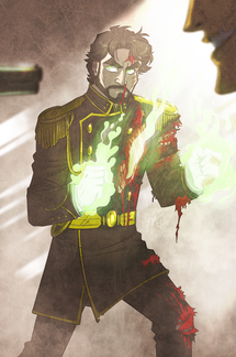 Especially since it was inflicted by a bullet! Well, this is more symbolic so his magic wouldn't really react that way--he'd just bleed like any other normal person, BUT he can use his magic to sort of cauterize the bleeding (though it does require a lot of energy and concentration so he can't keep it up for long).