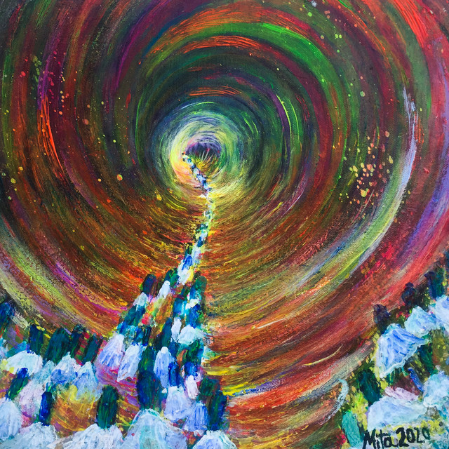 As with most abstracts, it started off as something and ended up as something completely different. I wanted to depict the act of breaking down one's walls to let the world in and, in the process, setting your soul free. This is what I came up with.