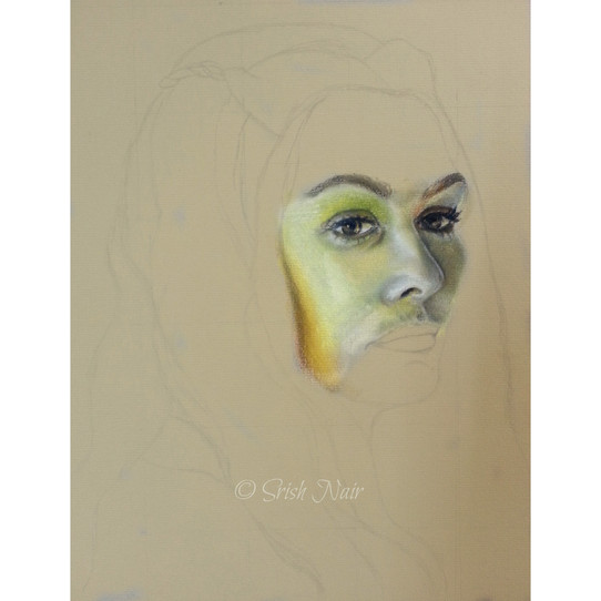 Stuff I used: Water soluble graphite pencil, dry pastels, charcoal, kneaded and hard erasers, blending stumps.