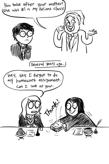 Call it a theory, but I think this is how Lily really did get so good at potions, do you know what I mean? Like she stole ideas from Severus or something...