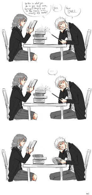 "How did he get done so fast?" Lily muttered as she watched Severus Snape bottle up his potion sample to turn in for grading while she continued to feverishly work away on hers.A moment later she heard someone behind her say, "Add one counterclockwise."