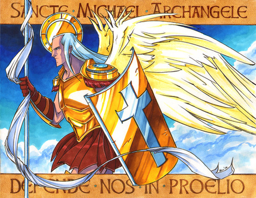 Very good combination of midevil artistic styles with modern ones, creating a somewhat believable angel picture, as though it was part of an old illuminated manuscript. The color combination is great, too.