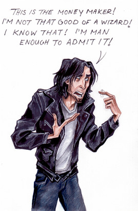 OK, so I was thinking about how Snape ALWAYS wears black (except for when I drew him in brown so he could be a Jedi . . . and it just wasn't right. Even I thought so.) And I'd seen this t-shirt around, and thought it appropriate. In the same series as this pic I did earlier this year [link]More fun with my Triplus pens (and a lightbox!) - better this time because I bought them their own special paper. Text courtesy of PSP7.
