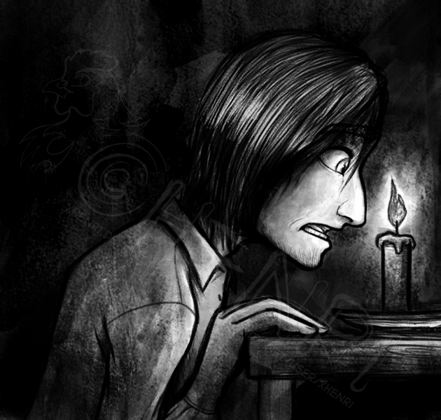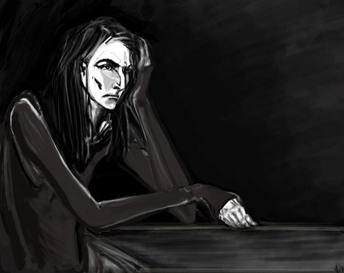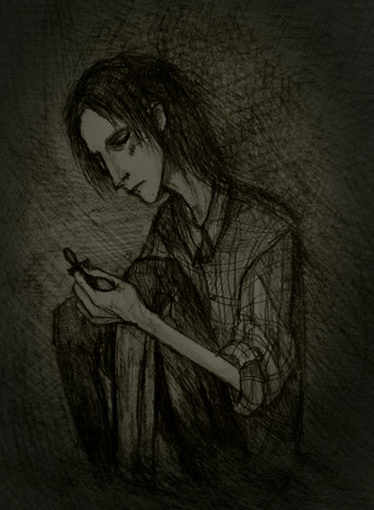 Aww poor Severus. Great drawing, although the left hand seems a bit wonky - extra long I think. He looks like he's contemplating cutting his wrists o.0