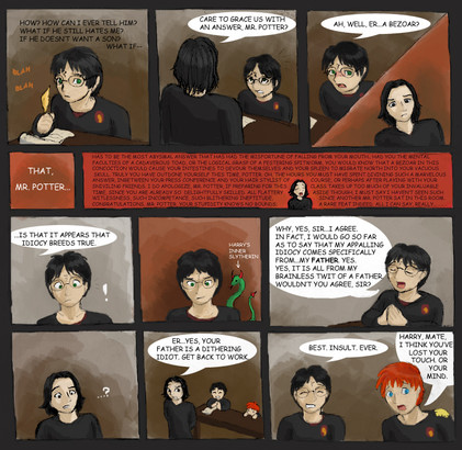 i love Harry's expression and body language in the last panel, very nice! you captured his feelings of realization about his father really well! (i bet that if one of j.k's kids saw this now, they'd be pleased too!)