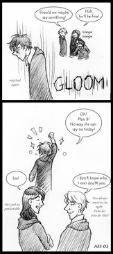I love your comic strips. I think you should do the whole series! . . . That's a bit much, isn't it? *sigh* I've been thinking for ages that someone should make a comic of the books, and I love the way you draw the characters. (I'd do one myself, except I can't draw to save my life ^^")