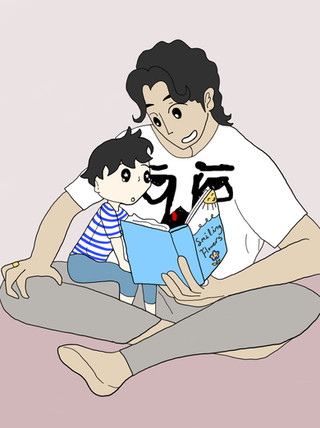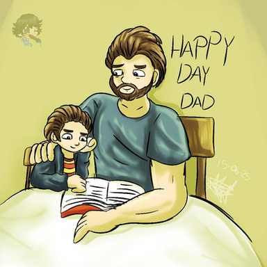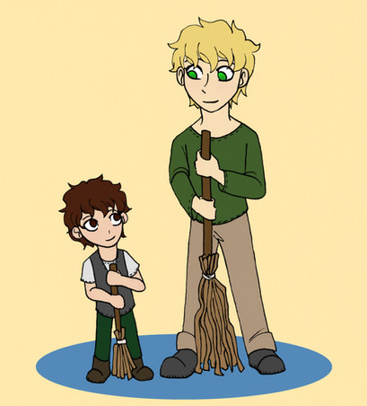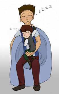 A commission for PL1 ! She asked for Charlie teaching Oscar how to read using the family history book. (Oscar's in it now too, which is proof that he's family- not that anybody needed proof.) The book is pretty big compared to him. X3 Kiddo's learning his letters, and doing a great job!