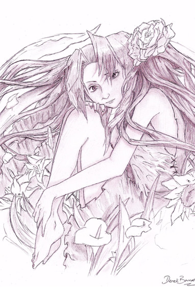 Bon alors je précise que j'ai pris modèle sur différents images de.. de.. fl-fl.. aaaargh *syncope* ... Et aussi pour la pose de Kaline. A propos de Kaline, j'expliquerais donc mon choix de personnages/fleurs dans la version finale, et donnerai aussi le lien des différents modèles usités o/